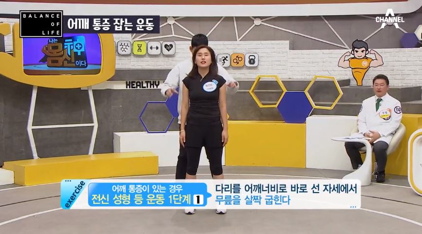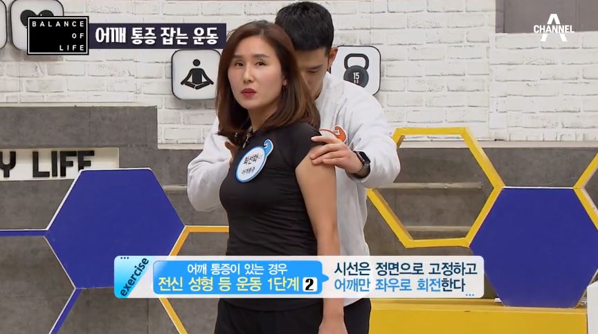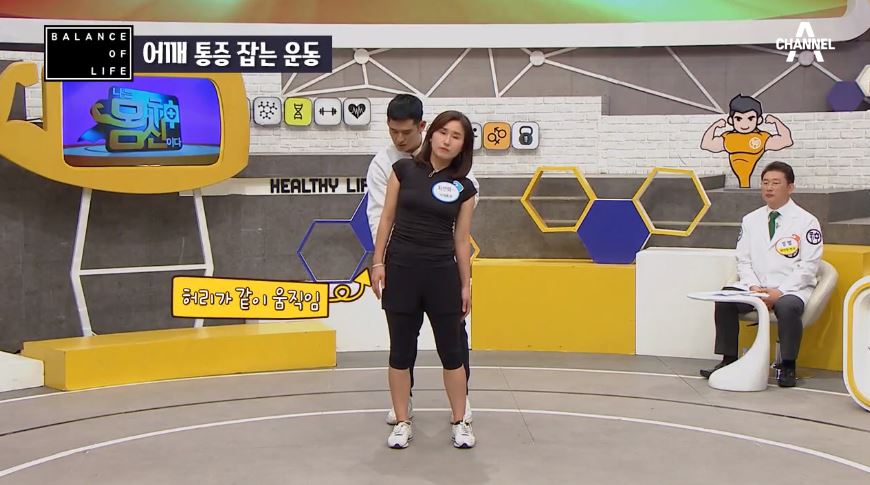 그냥 볼때는 동작이 작아보이지만 실제로는 아픈부위에 자극이 되서 오십견을 잡아주는데 도움이 된다고 합니다. 통증으로 팔을 들지 못했던 참가자의 운동 전후 모습에서 그 차이가 확인이 되네요.
