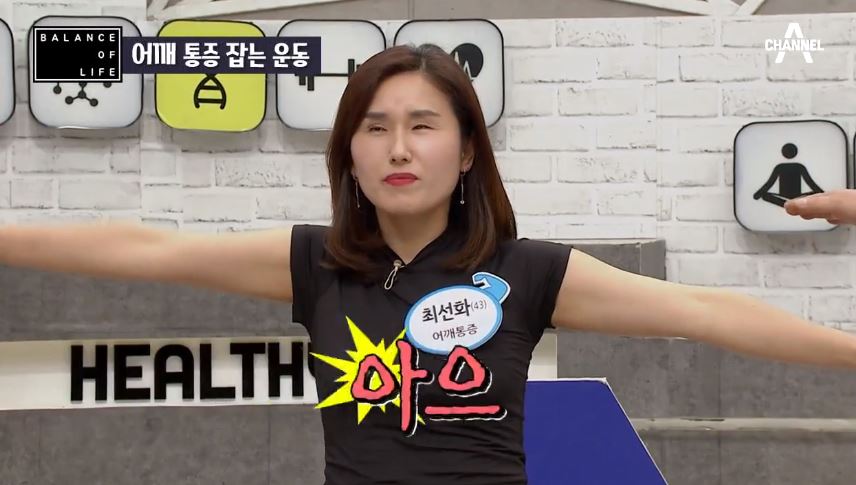 그냥 볼때는 동작이 작아보이지만 실제로는 아픈부위에 자극이 되서 오십견을 잡아주는데 도움이 된다고 합니다. 통증으로 팔을 들지 못했던 참가자의 운동 전후 모습에서 그 차이가 확인이 되네요.