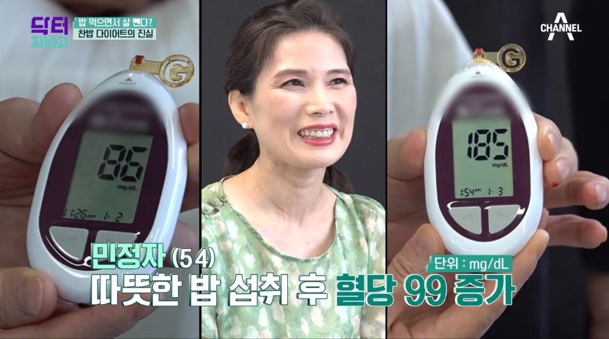 과거 닥터지바고 프로그램에서는 이전부터 논란이 됐던 찬밥다이어트에 대한 궁금증을 풀기위해 직접 실험을 진행했습니다. 따뜻한 밥과 찬밥을 먹고 두시간 후, 혈당체크를 해보는 실험이었는데요.