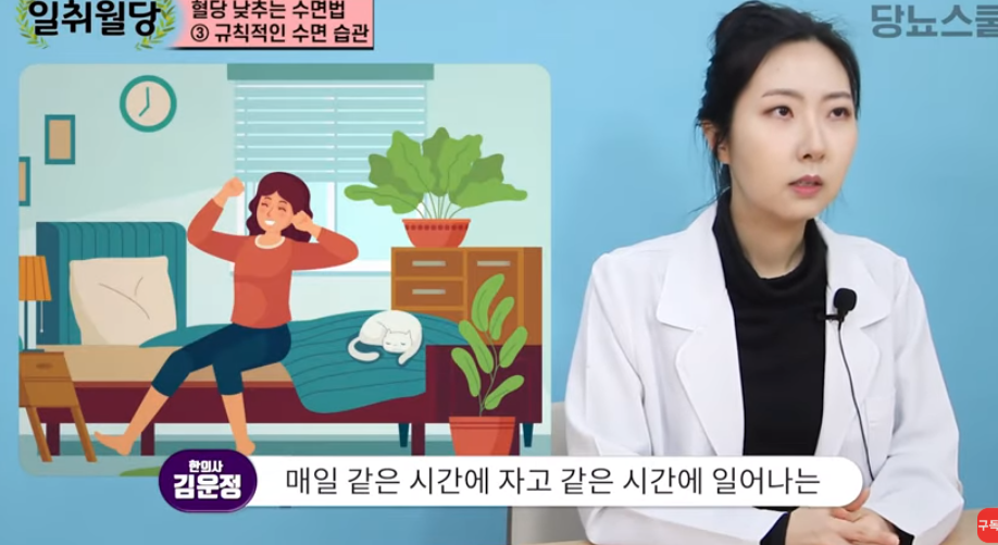매일 같은 시간에 자고 같은 시간에 일어나는 규칙적이고 반복적인 생활을 해야 코르티솔 분비가 줄어들면서 수면의 질은 좋아지고 규칙적이고 반복적인 생활을 해야 혈당이 낮아지게 됩니다.