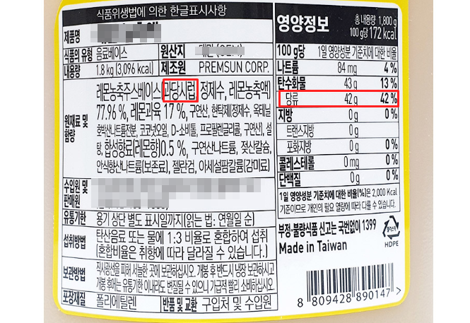 우리가 마시는 음료수나 드링크제 성분에는 전부 당이 표시 되어있습니다. 과당이라던지, 설탕이라던지, 액상이라던지 다 표시가 되어 있는데 종류에 상관없이 당의 함량이 낮은 걸 고르는게 가장 중요합니다.