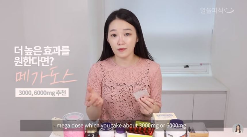 보통 한알당 1000mg 짜리 제품이 많고, 요즘은 더 높은 효과를 보기위해 복용량을 몇배 올리는 '메가도스 (mega dose)' 방법도 많이 사용되고 있습니다.