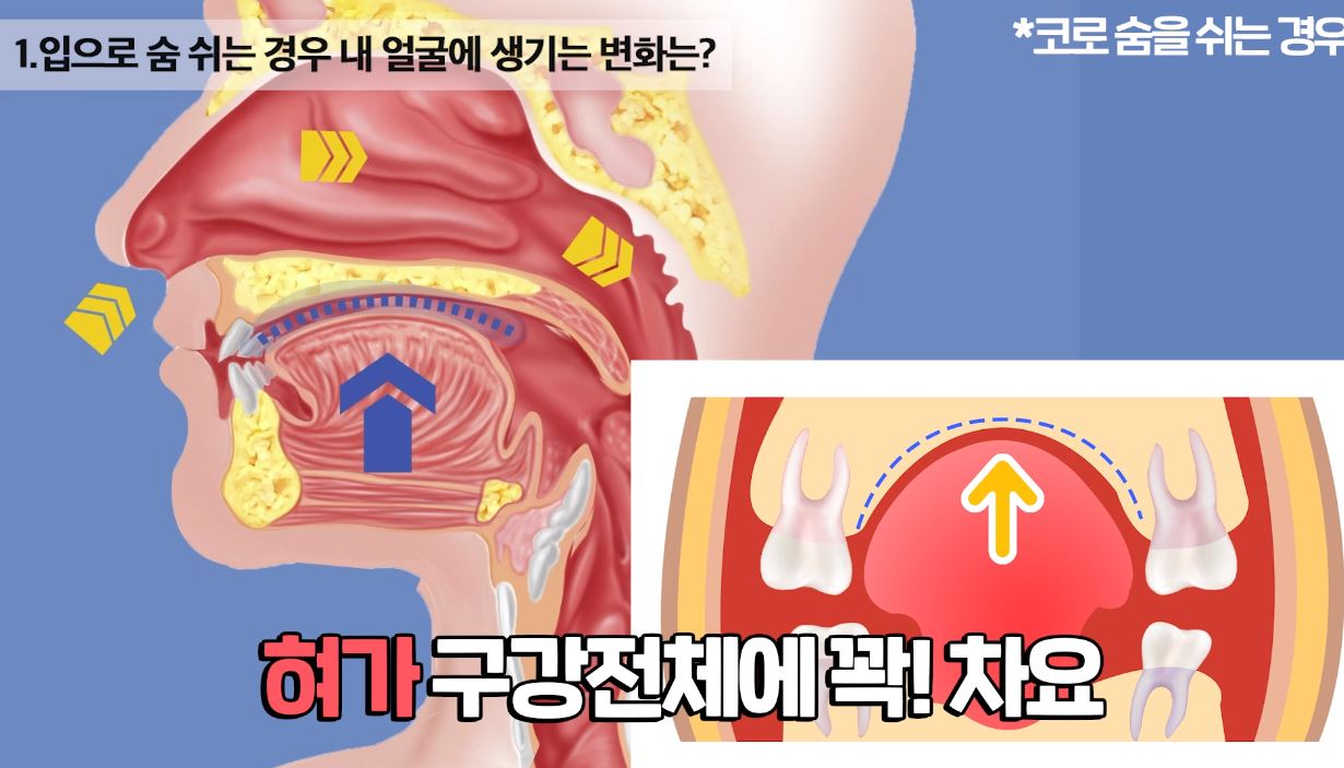 당연히 이런 현상은 성장기에 더 극적으로 나타나기 때문에 어린이, 청소년기에 숨쉬는 습관은 성인이 되었을 때 얼굴 모양에 막대한 영향을 미치게 됩니다.