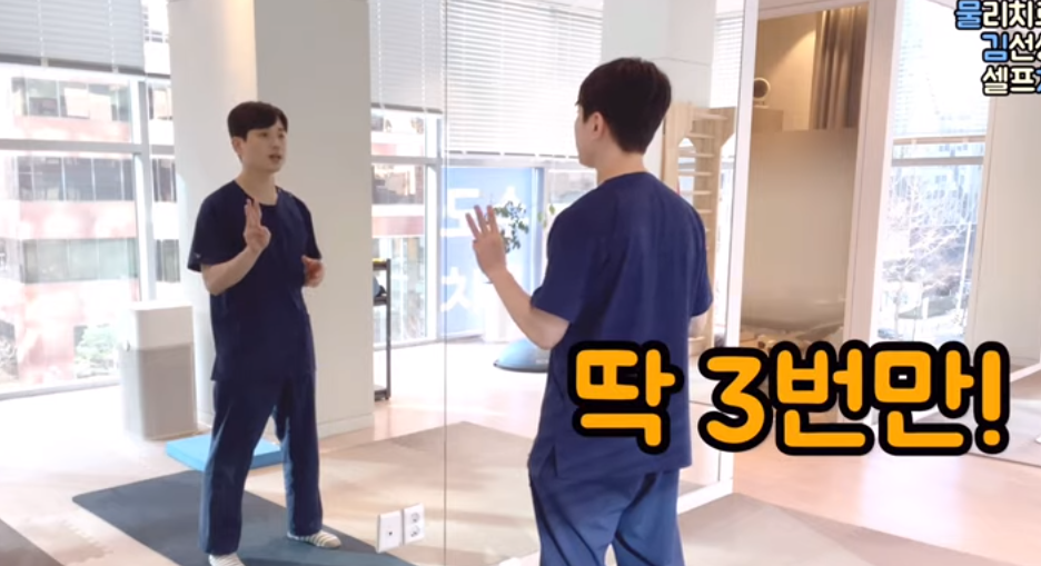 이 스트레칭은 동작을 유지하고 있는 것 자체가 어렵기 때문에 더도 말고 덜도 말고 딱 세 번만 해주면 됩니다.