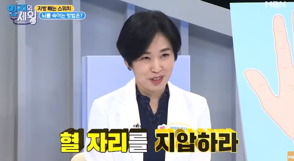 뇌에 포만감을 주는 혈자리를 눌러 주는 것인데요, 뇌는 배가 부르다고 장에 신호를 보내 식욕을 억제해 준다고 합니다.
