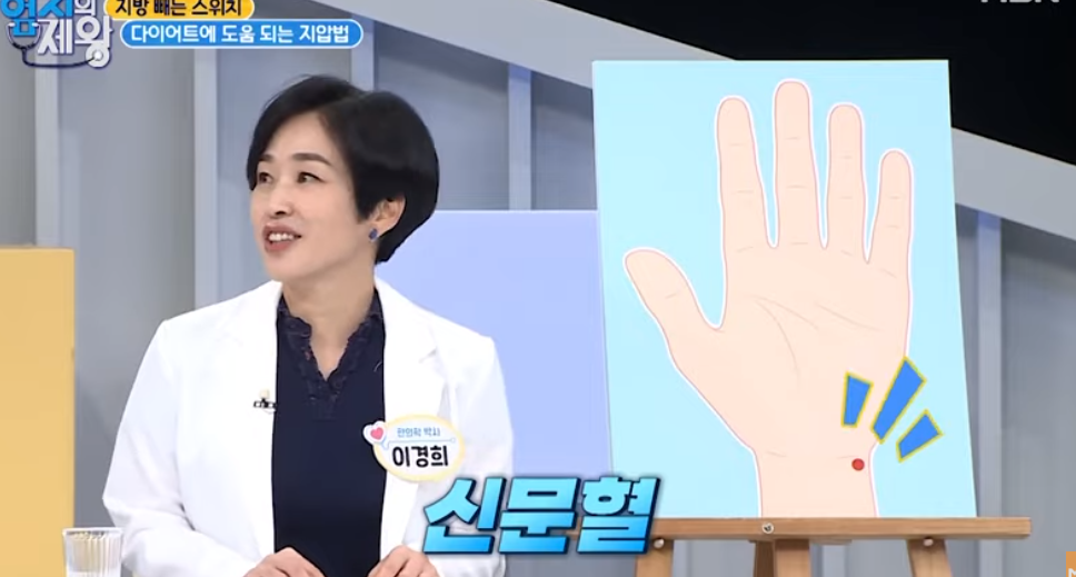 또한 식욕 억제 호르몬의 작용을 방해합니다. 신문혈을 누르면 스트레스가 완화 되어 식욕을 억제할 수 있습니다.