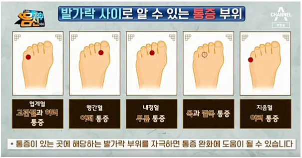 과거 나는 몸신이다를 통해 소개됐던 발가락을 자극해서 어깨 통증을 잡는 지압법에 대해 알아보도록 하겠습니다.
