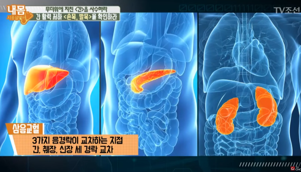 3가지 음경락이 교차하는 지점으로 간, 췌장, 신장 세 경락이 교차하는 중요한 혈자리 중 하나입니다.
