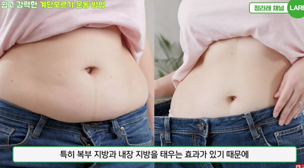 평소 걷기 운동만 해왔다면 걷기운동 전에 계단오르기를 하면 복부 지방과 내장 지방을 태우는 효과가 있기 때문에 병행하면 좋습니다.