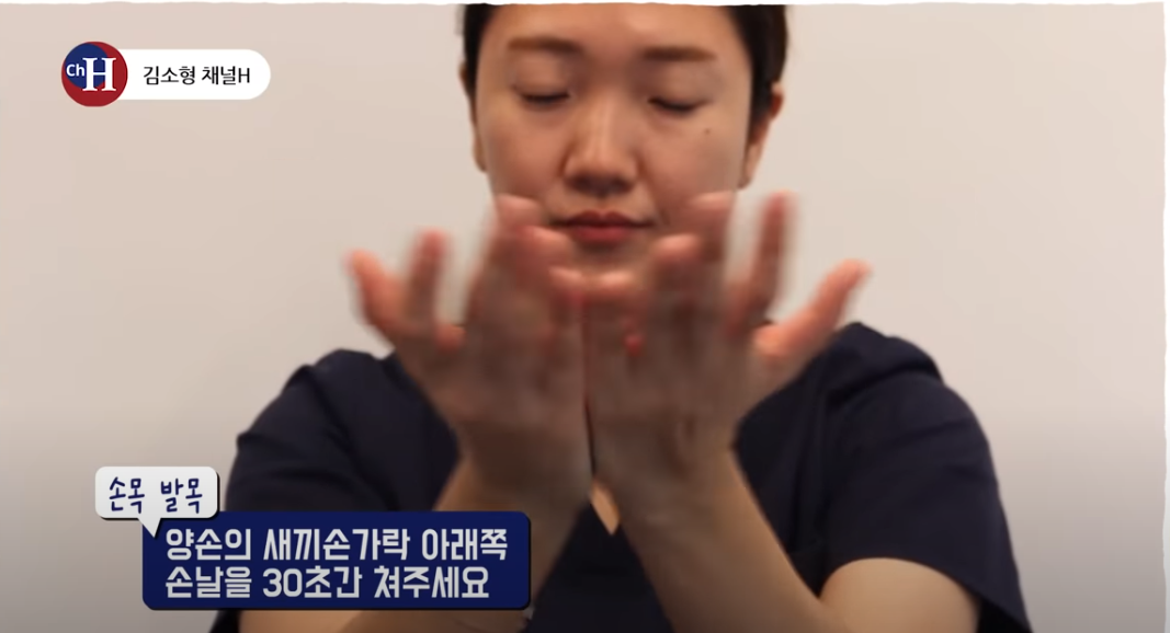 양손의 새끼손가락 아래쪽 손날을 30초간 쳐줍니다.