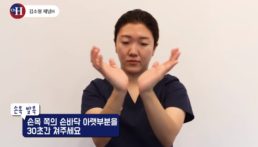 손목 쪽의 손바닥 아랫부분을 30초간 쳐줍니다.