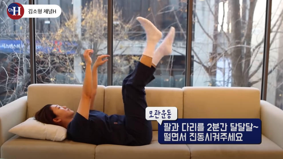 팔과 다리를 2분간 달달달 떨면서 진동시켜줍니다.