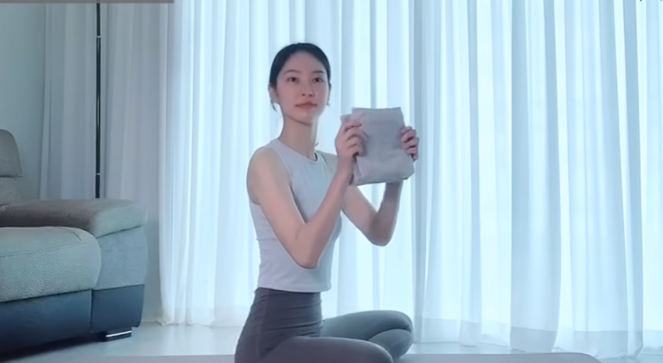 수건 당기며 가슴열기