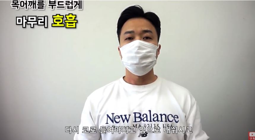 목과 어깨에 힘이 쭉 빠진다는 느낌으로 호흡을 하면서 마무리 합니다.
