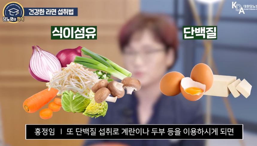 라면은 식이섬유소와 단백질이 부족합니다. 라면에 본인 기호도에 맞는 야채나 계란이나 두부 등을 이용하게 되면 당뇨인들도 라면을 건강하게 섭취할 수 있습니다.