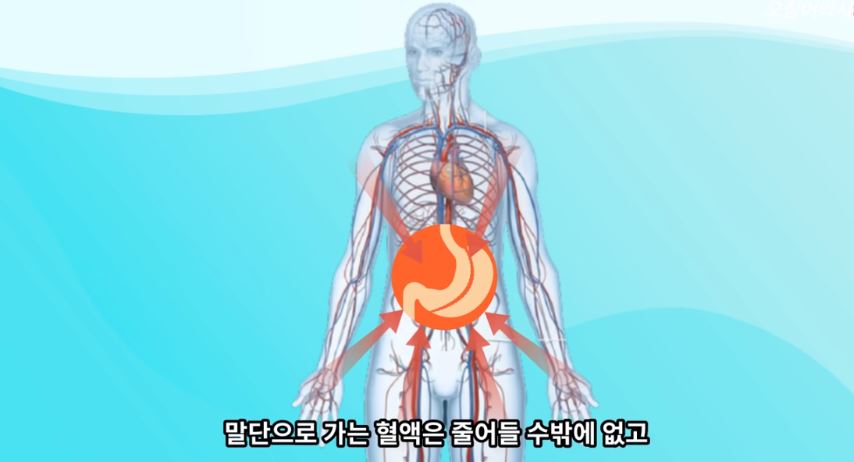 과식을 하면 어쩔 수 없이 우리 몸은 소화를 시키기 위해서 위장관으로 혈류가 모이게 됩니다. 그래서 말단으로 가는 혈액은 줄어들 수 밖에 없습니다.