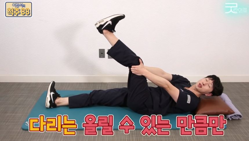 10초 간 자세를 유지하고 10번씩 5세트씩 진행합니다.(반대쪽 동일하게 진행)