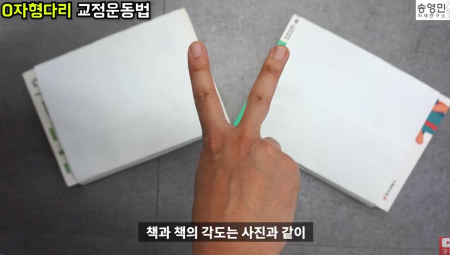 책과 책의 각도는 손가락 V자 모양 각도로 만들어줍니다.