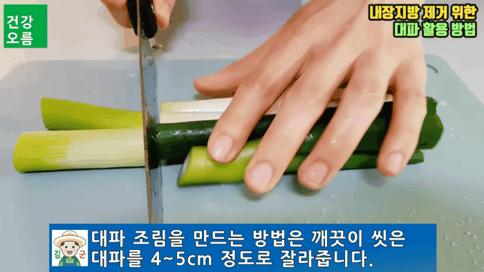 깨끗이 씻은 대파를 4~5cm 정도로 잘라 줍니다.