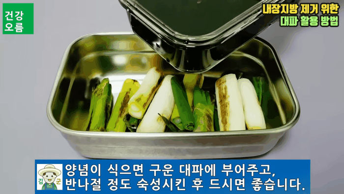 이렇게 구운 대파를 식초와 간장에 절여서 먹으면 더욱 좋은데요, 식초의 주성분인 아세트산은 식욕을 억제하고 내장지방을 태우는 효과가 있어 체지방 제거에 아주 좋습니다.