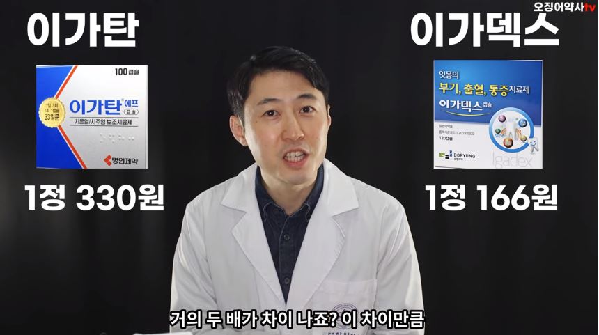 이가탄과 100% 동일한 성분으로 만들어진 이가덱스의 가격은 한 정당 가격이 166원이었습니다.