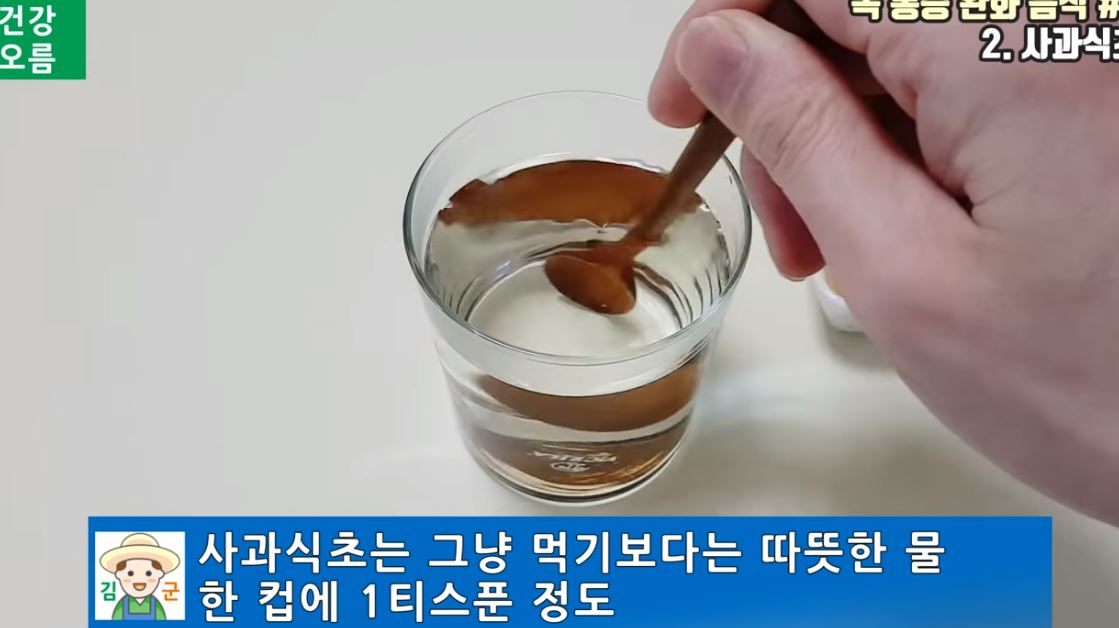 사과 식초는 그냥 먹기보다는 따뜻한 물 한 컵에 1티스푼 정도 타서 마시는 것이 좋습니다.