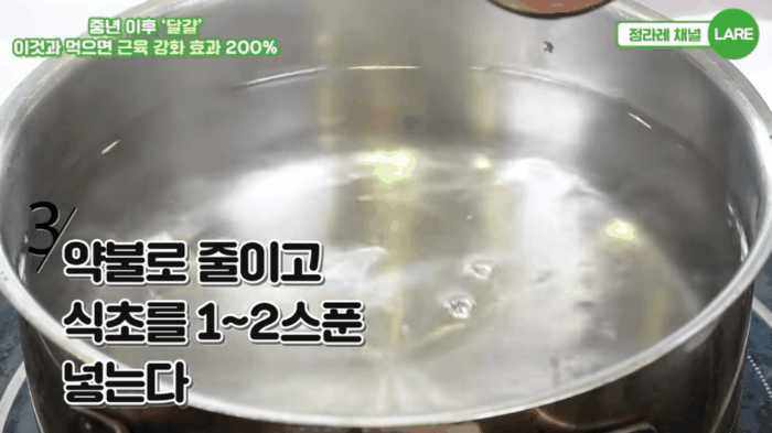 ③ 약불로 줄이고 식초를 1~2스푼 넣습니다