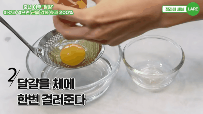 ② 달걀을 체에 한번 걸러줍니다