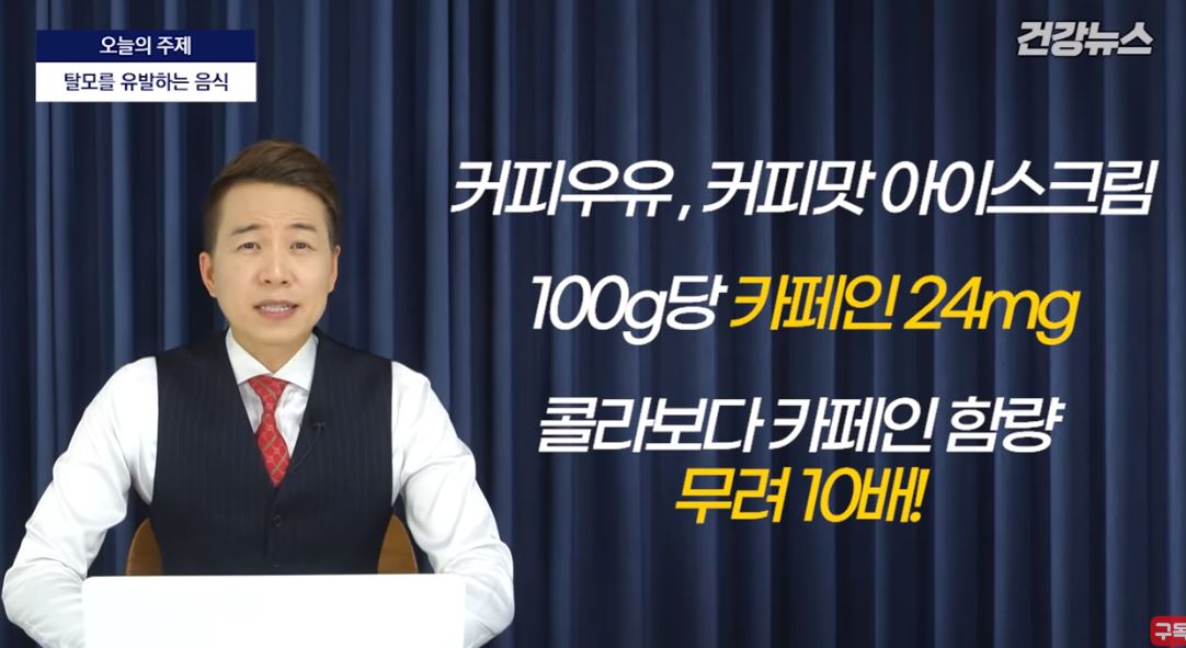 적당한 양의 카페인은 혈액순환을 촉진하고 피로도 낮춰주며 우울했던 기분까지 환기시켜줍니다. 하루 한두잔 정도는 괜찮은데 과도한 카페인 섭취는 세포에 영양 공급을 불규칙하게 만들고 두피와 모낭에 악영향을 끼치게 ㅗ딥니다.