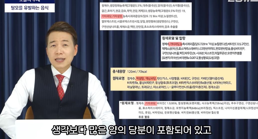 특히 단맛은 피부를 느슨하게 하는 성질이 있어서 피부를 늘어지게 만들고 머리카락이 쉽게 빠져나오게 만듭니다.