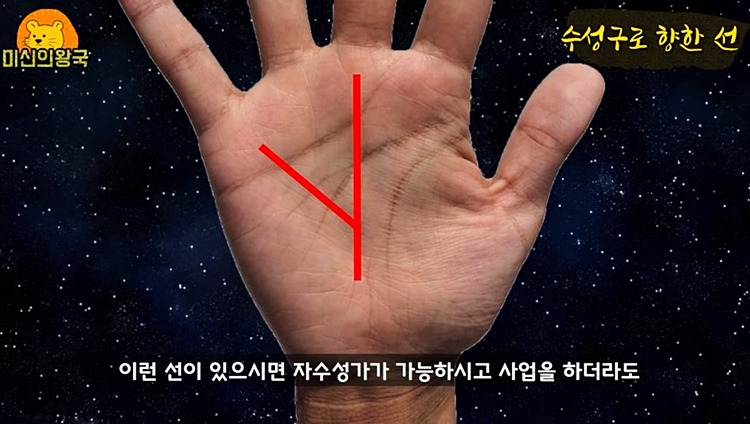 손금 가운데 운명선에서 수성구로 쭉 길게 올라가는 선이 있습니다.