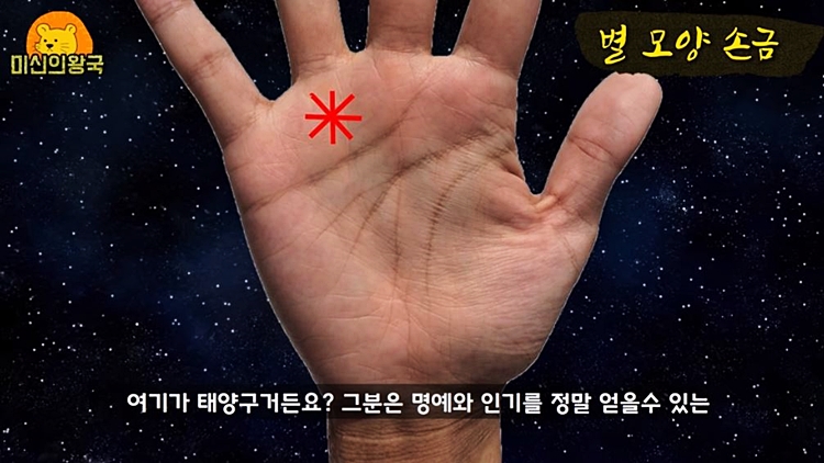 별모양이 좋다는 말은 많이 들어 보셨을겁니다. 특히 태양구에 별모양이 있는 경우라면 명예와 인기를 얻을 수 있다고 합니다.