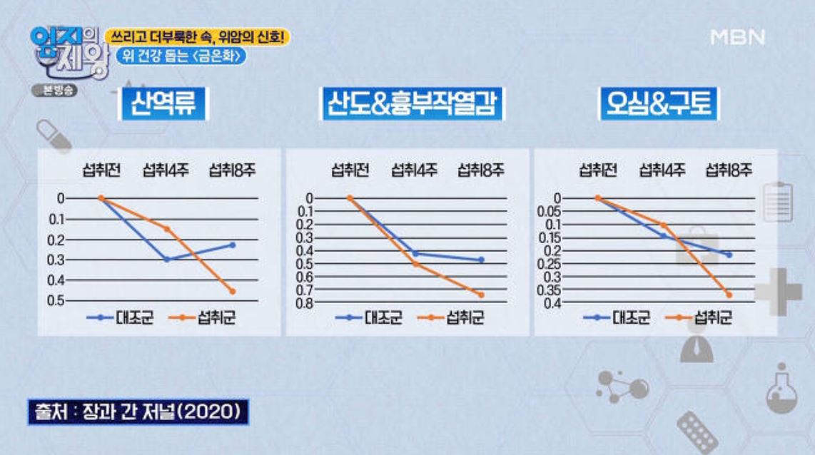 한국인들에게도 효과가 있는지 위장관 증상 평가 척도를 시험을 하였는데요, 위산역류, 오심과 구토 등 13개 평가 항목이 개선되는 것을 확인하였습니다.
