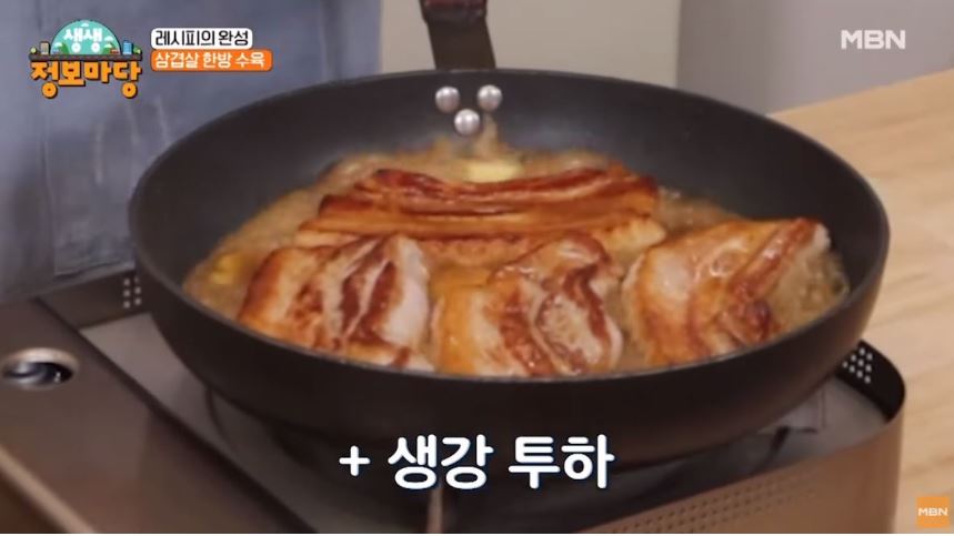 ① 달군 팬에 삼겹살을 올린다