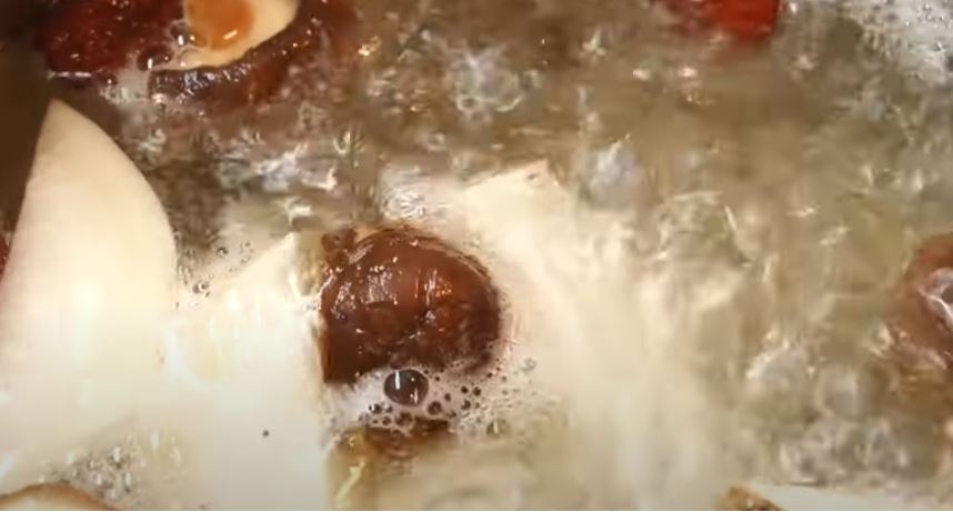 ④ 냄비에 물 1L를 넣고 말린대추와 표고버섯, 무를 넣고 약불에 30분 끓인다