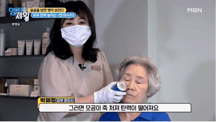 얼굴에 열감이 많으면 부기가 생기고 탄력이 떨어져 주름이 생기기 쉽습니다. 음료수캔을 차갑게 해서 마사지를 하면 열감을 낮춰서 전체적으로 주름까지 펴줍니다.