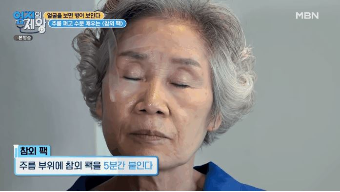 주름 부위에 참외 팩을 5분간 붙인다