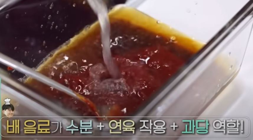 갈아만든배 음료를 넣으면 수분과 연육작용 그리고 과당 역할까지 합니다.