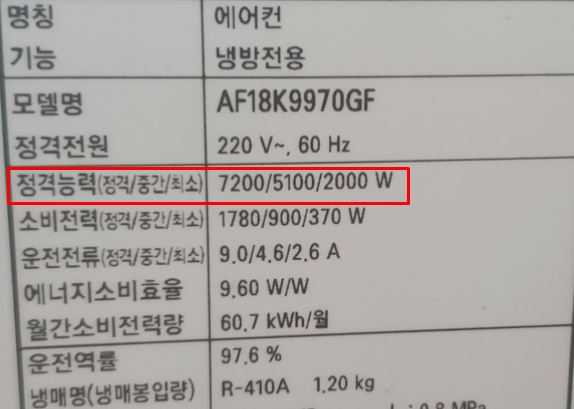 인버터 제품에는 냉방능력 또는 정격능력으로 구분되어 정격/중간/최소로 세분화 되어있습니다.