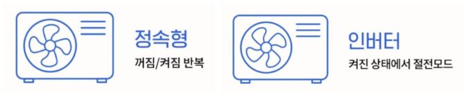 에어컨은 정속형과 인버터형으로 구분이 되는데 설정 온도와 상관 없이 실외기가 계속 돌아 가는 것이 정속형이고, 설정 온도에 도달하게 되면 실외기가 멈추는 것이 인버터형입니다.