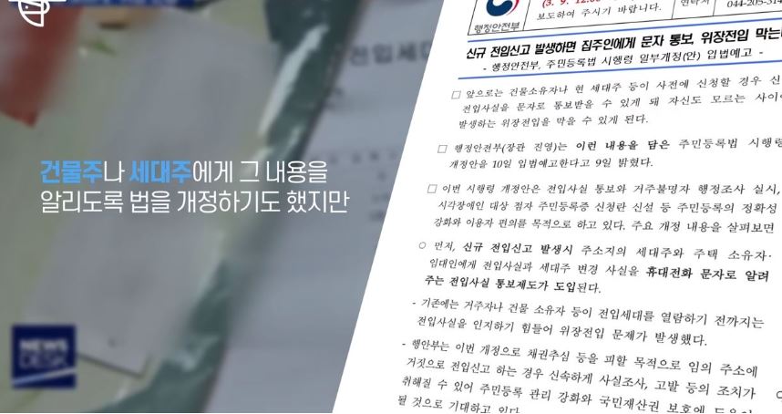 이를 막아 보고자 신규 전입자에 대해서는 건물주나 세대주에게 그 내용을 알리도록 법을 개정 하기도 했지만, 그 조차도 신청한 사람한테만 통보되기 때문에 여전히 위험은 남아있는 상태입니다.