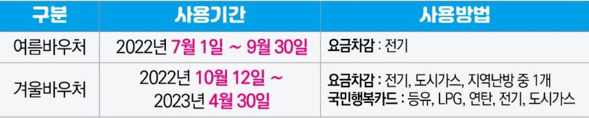 에너지바우처는 국민 모두가 따뜻한 겨울과 시원한 여름을 보낼 수 있도록 에너지바우처(이용권)을 지급하여 전기, 도시가스, 지역난방, 등유, LPG, 연탄을 구입할 수 있도록 지원하는 제도입니다.