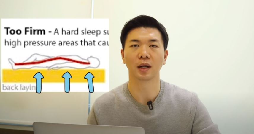 너무 딱딱한 매트리스는 누웠을 때 바닥과 몸 사이의 빈 공간을 적당히 채워 줄수가 없어서 목 근육과 허리 근육에 긴장이 가게 되고, 닿는 부분의 압력이 높아져 통증을 일으킬 수 있습니다.