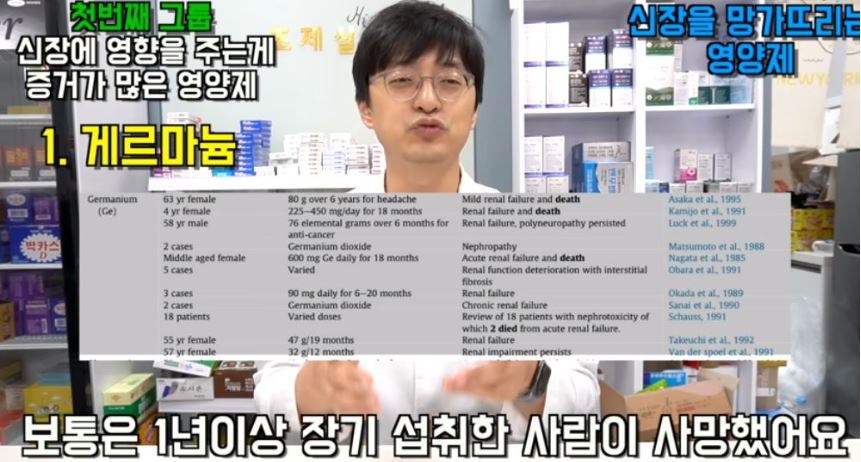 독성이 강력한 게르마늄은 5명 이상의 사망 사례 포함하여 총 40여건의 이상의 신장 질환 케이스가 보고 되고 있습니다.