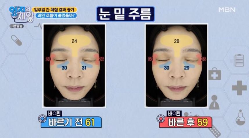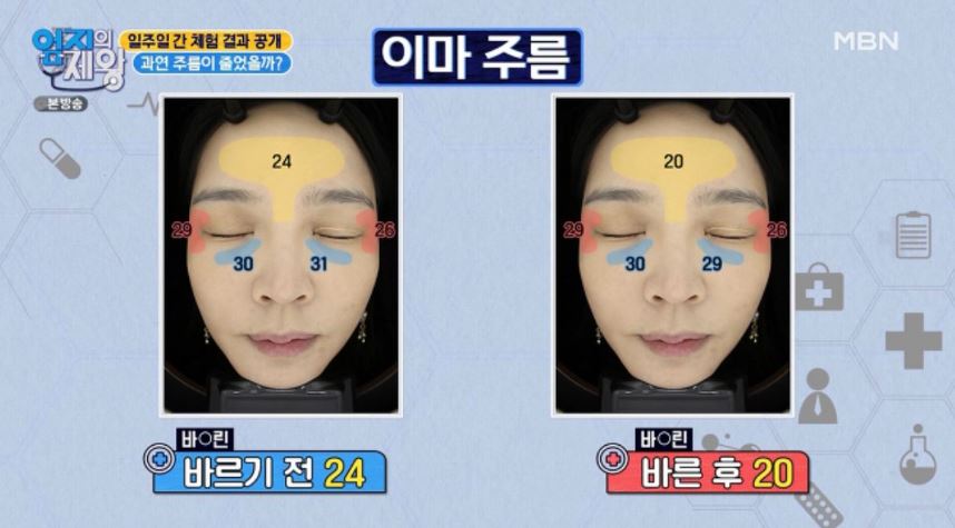 이마, 눈가, 눈밑 주름의 갯수를 측정하고 7일간 바세린을 발랐습니다. 그 결과는 어땠을까요?