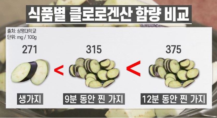 생가지보다 12분 동안 찐 가지에 클로로겐산이 더 많다는 것 또한 수치로 증명되었습니다.