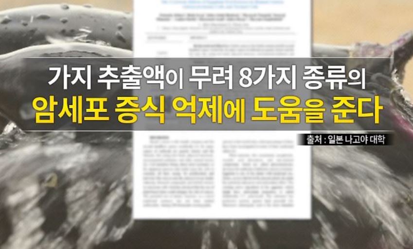 자료에 따르면 가지 추출액이 무려 8가지 종류의 암세포 증식 억제에 도움을 주는 것으로 소개되었습니다.