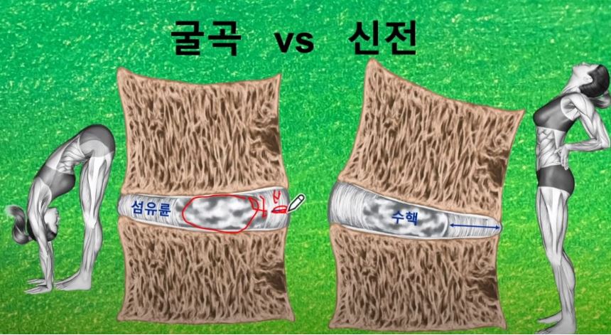 따라서 허리를 굴곡(구부리는것) 하는 것보다 신전 하는 것이 허리 아픈 사람들에게는 중요하다고 합니다.