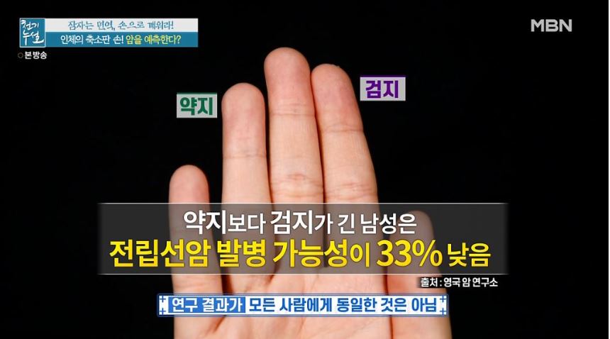 남성의 경우는 약지보다 검지가 긴 남성은 반대로 전립선 발병 가능성이 33% 낮다고 합니다.