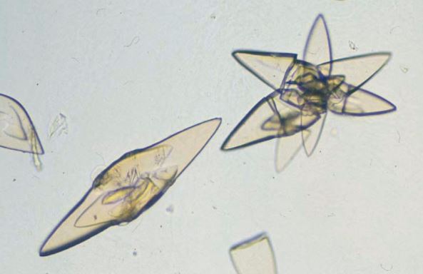 이렇게 땀을 많이 흘리게 되면 혈액 내 요산 수치가 높아지게 되는데요, 요산을 현미경으로 확대해 보면 매우 날카로운 모양을 띄게 됩니다.